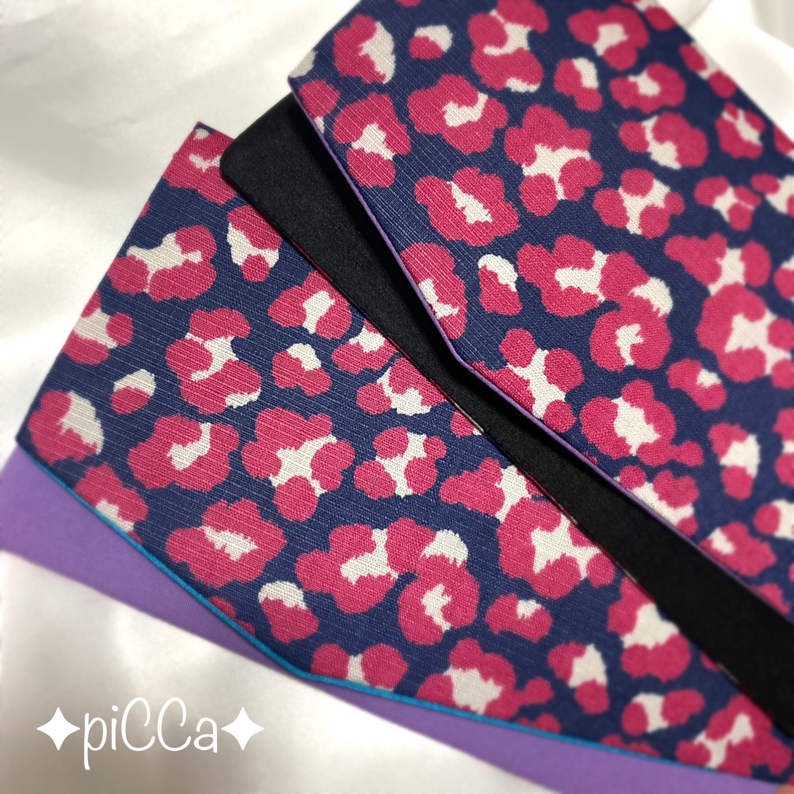 myフクサ レオパ柄ネイビー×黒×紫 普通サイズ袱紗