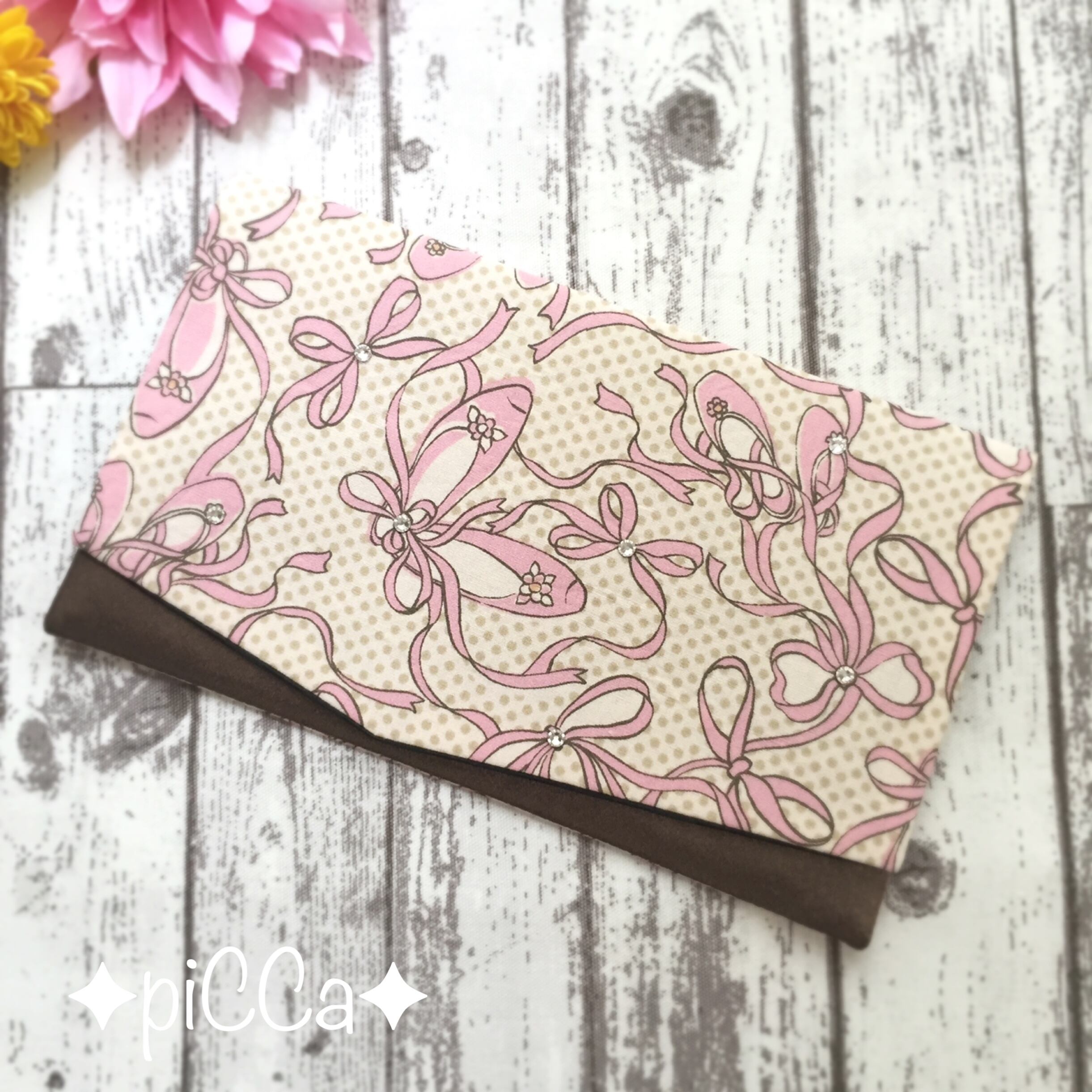 myフクサ バレエシューズ柄スワロ付×ブラウン×黒 W20サイズ袱紗