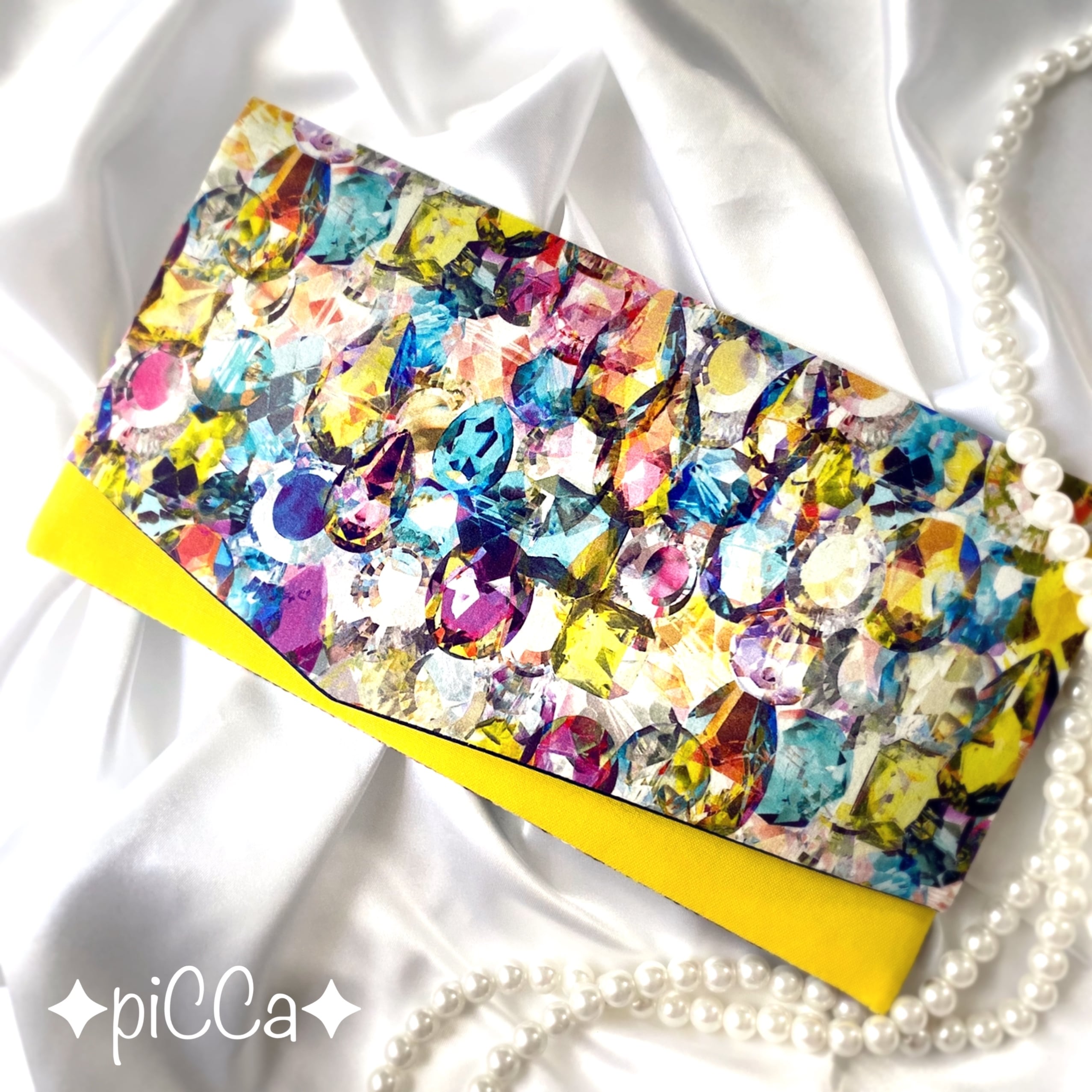 表生地はリバティのカラフルなビジュー(宝石)柄生地。