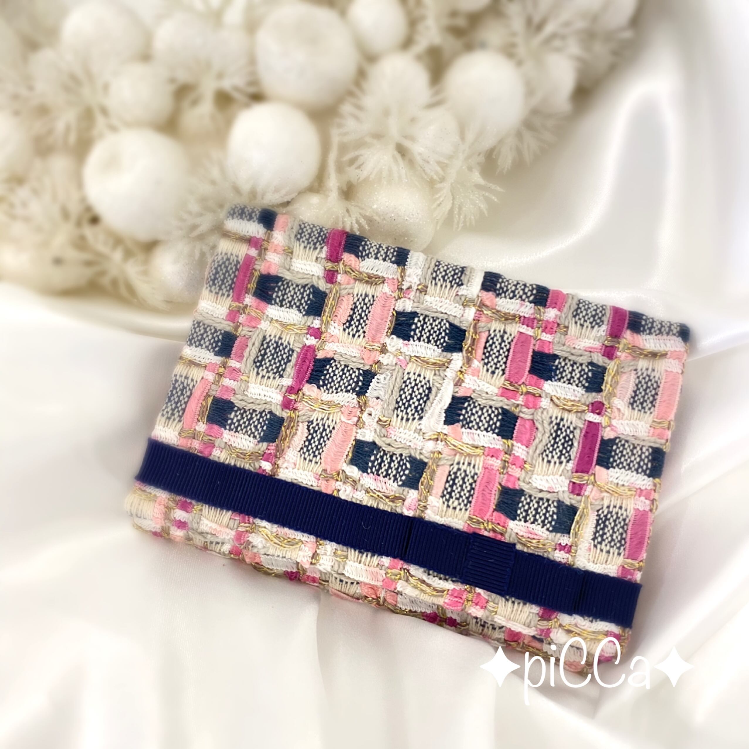 ◆myフクサ リントンツイード白黒+Bigリボン 普通サイズ袱紗
