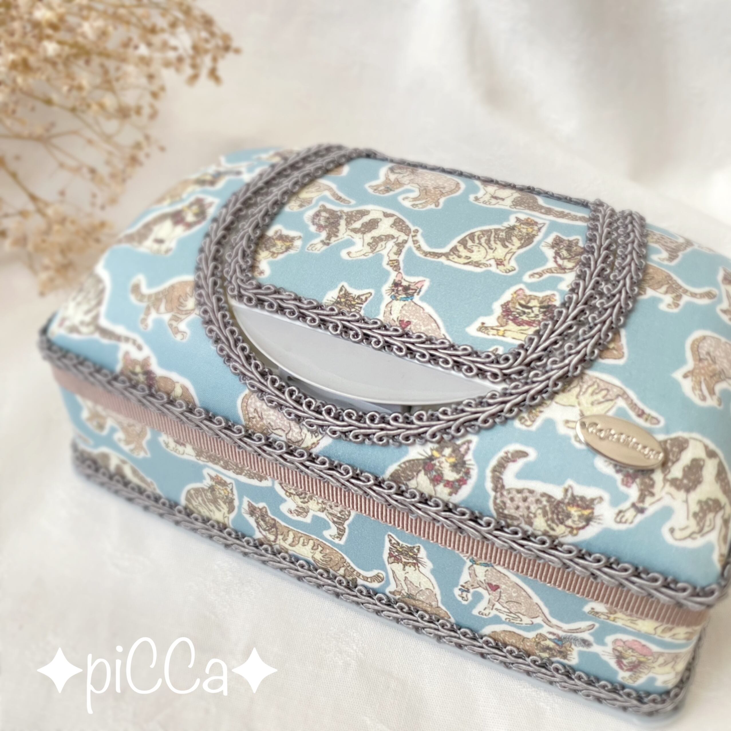 既製品に生地を貼り、リボンなどでデコレーションしたものです。