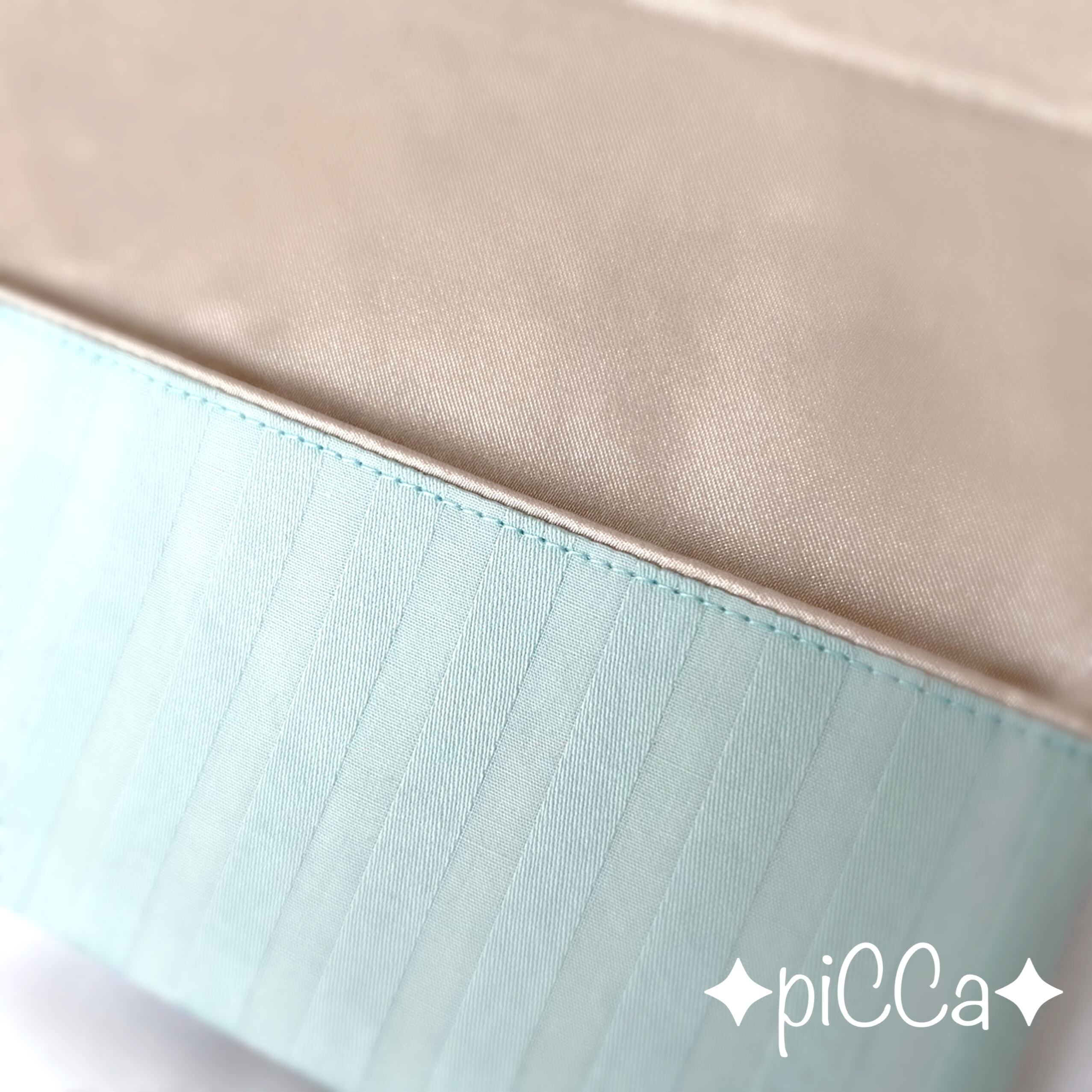 ◆myフクサ クッキー柄パステル白×水色ストライプ×ゴールド 普通サイズ袱紗