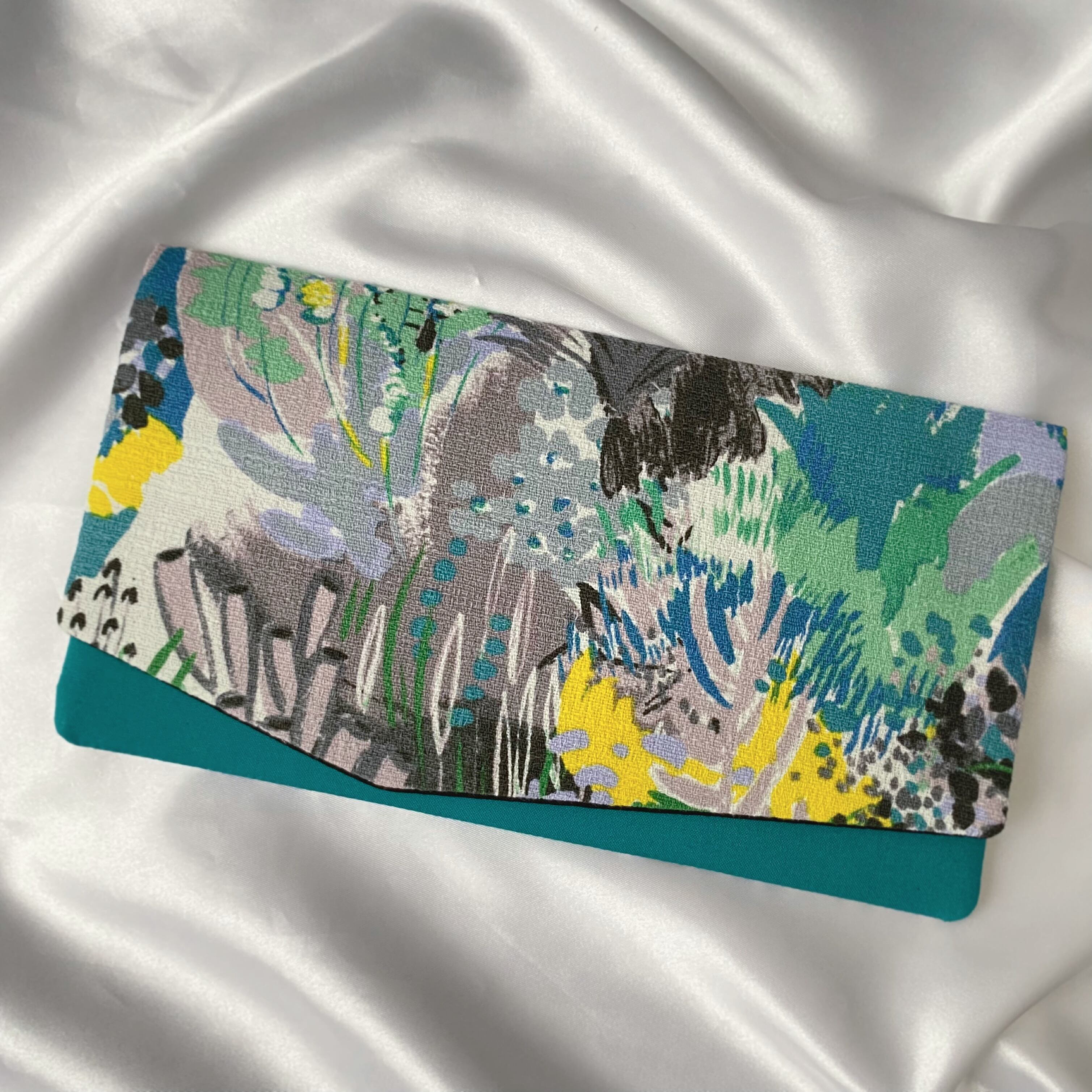 myフクサ 草花柄×青緑×黒 普通サイズ袱紗