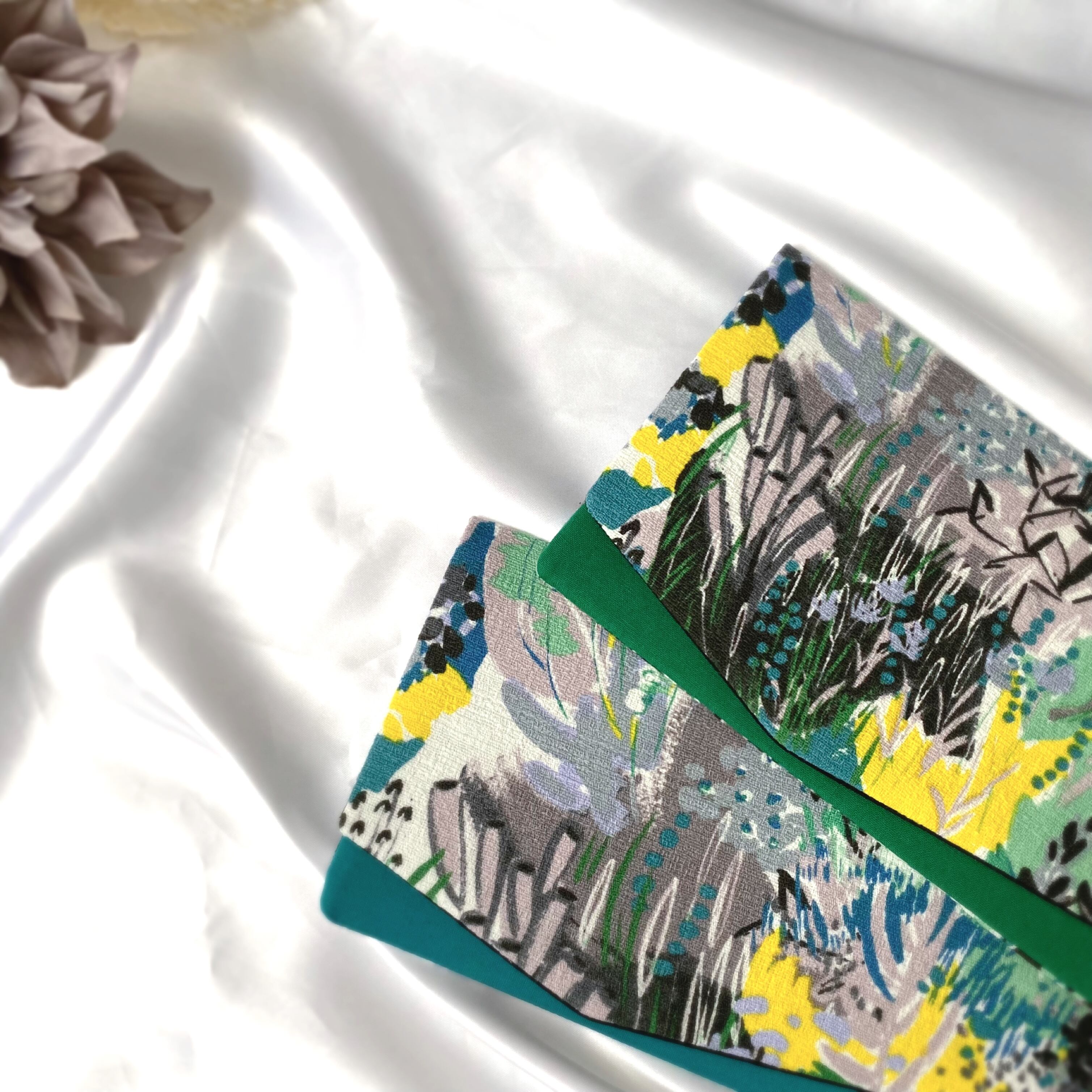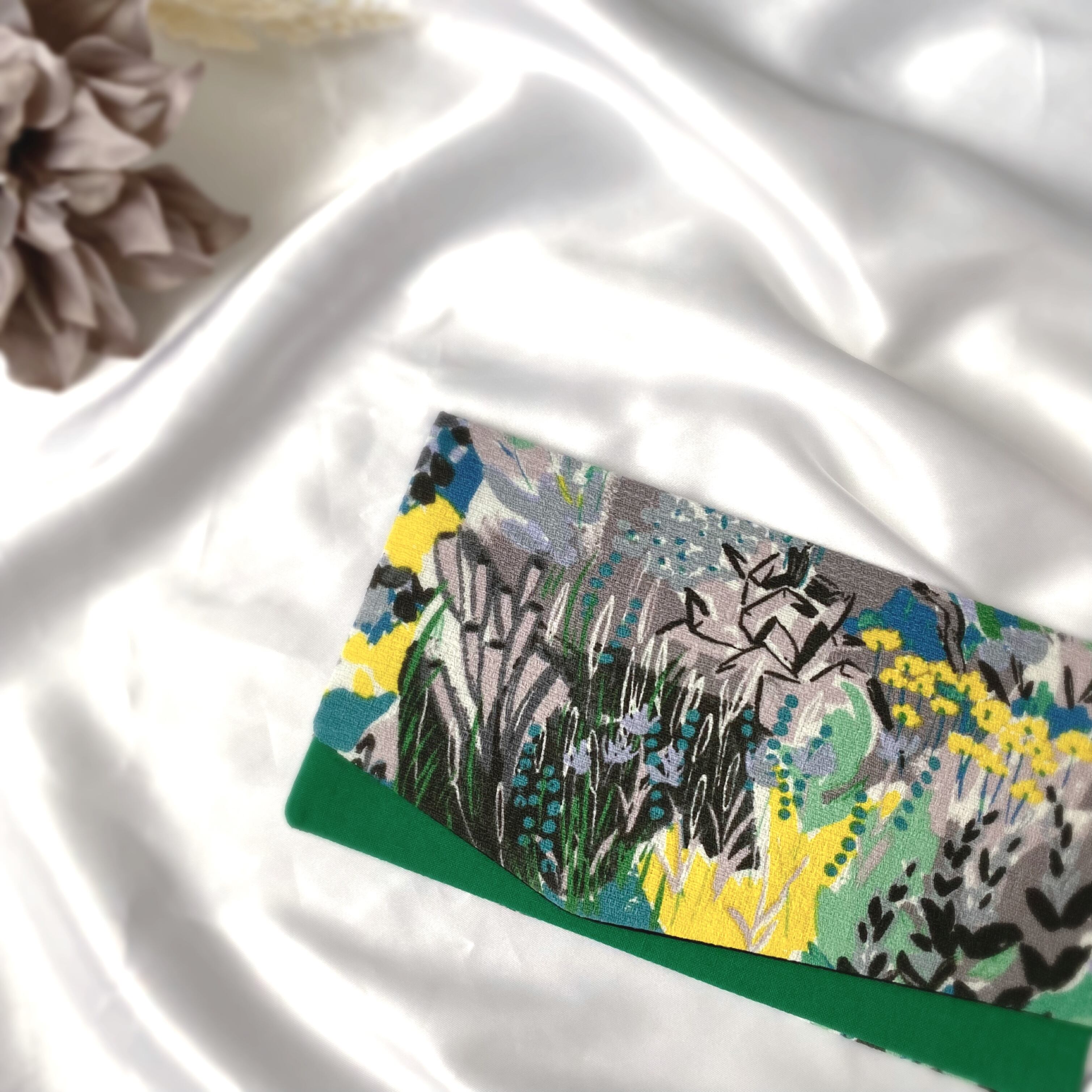 myフクサ 草花柄×グリーン×黒 普通サイズ袱紗